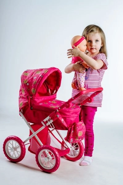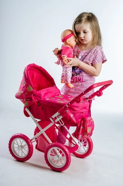 Ez a szép babakocsi játékbabáknak örömet szerez minden kis anyukának. Az alsó tárolóhellyel minden szükséges kéznél lehet. A stílusos táska a babakocsi oldalán ideális játékok és egyéb szükségletek számára.
