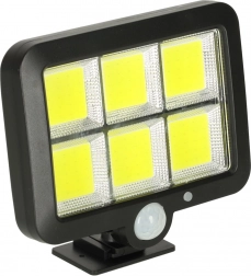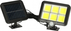 Napelemes lámpa mozgás- és szürkületérzékelővel, 120 LED diódával felszerelve, ideális kültéri területek megvilágítására és a biztonság növelésére a mozgásérzékelésnek köszönhetően.