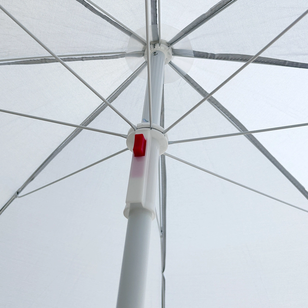 A 140–180 cm közötti magasság könnyen beállítható a nap állásához igazodva. Összecsukva kompakt méretű, így kényelmesen szállítható és tárolható.