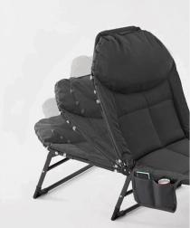 Az ágy 5 fokozatban állítható fejtámlával van felszerelve, amely lehetővé teszi az ideális szög beállítását 0° és 90° között a maximális kényelemért. Az ergonomikus és puhán párnázott párna kényelmes támaszt nyújt, miközben a kiváló minőségű Oxford anyag hozzájárul a kellemes pihenéshez otthon és utazáskor is.