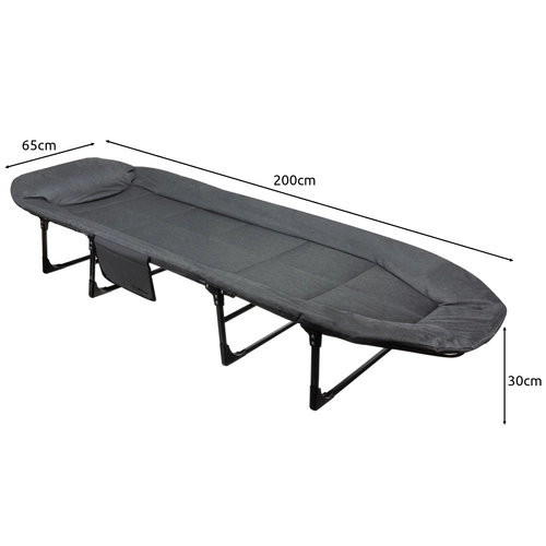 Összecsukva az ágy kompakt és könnyen szállítható, ami megkönnyíti az átvitelét és tárolását. A praktikus oldalsó zseb biztosítja, hogy személyes tárgyai, mint a telefon vagy könyv, mindig kéznél legyenek.
