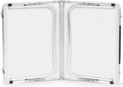 Ez a kompakt asztal fel van szerelve védelemmel a véletlenszerű összecsukódás ellen és kényelmes szállítófogantyúval, ami egyszerűbbé teszi a kezelést. Összehajtható bőrönd alakúra, ami könnyíti a szállítást és tárolást.