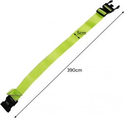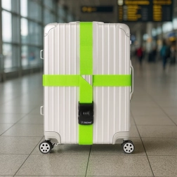 A zöld Trizand csomagpánt *stabil és biztonságos rögzítést* biztosít csomagjainak. Állítható hossza akár 390 cm-es hosszúságig garantálja, hogy minden méretű bőröndhöz igazodjon, a kabinméretűtől a nagy utazótáskákig.