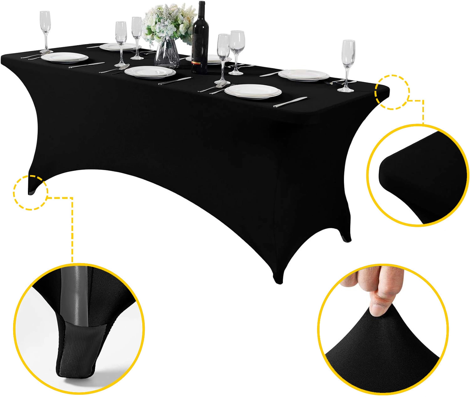Ez a univerzális elasztikus asztalterítő ideális a 240 cm hosszú asztalokhoz, elegáns hatást kölcsönöz minden eseménynek és ellenáll a foltoknak.