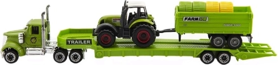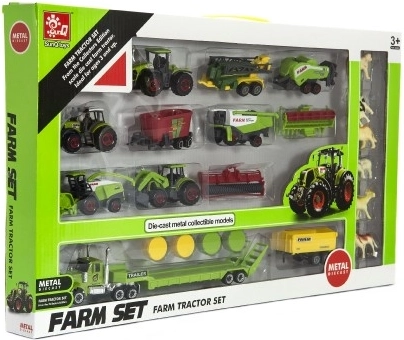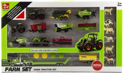 A készlet különféle járműveket tartalmaz, beleértve a traktorokat és utánfutókat. Valósághű megjelenésének és mozgatható részeinek köszönhetően a játék órákig tartó szórakozást biztosít. A 53x31x5 cm-es csomagolása rendezetten tartja az összes darabot.