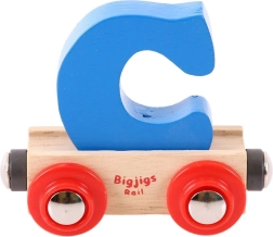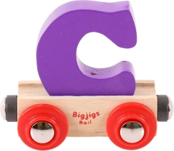 C betűs kocsi a Bigjigs Rail márkától, amely fából készült vonatkészlet része, szórakozást nyújt a gyerekeknek, és fejleszti képességeiket.