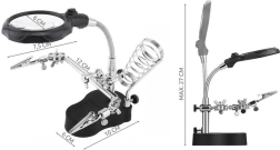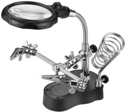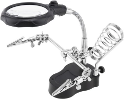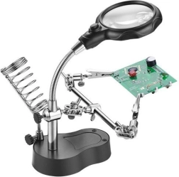 A harmadik kéz készlet ideális megoldás minden hobby forrasztási munkához, amely magában foglal egy nagyítót, LED világítást és forrasztótartót, hogy könnyen kezelhesse a részleteket.