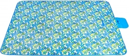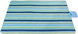 A pléd két mutatós dizájnban érhető el – kék virágok és kék–zöld csíkok. Az alsó réteg vízálló, ezért ideális parkba, strandra és fesztiválra is. Az integrált hordfül és a tépőzár gyors összehajtást és kényelmes szállítást biztosít.