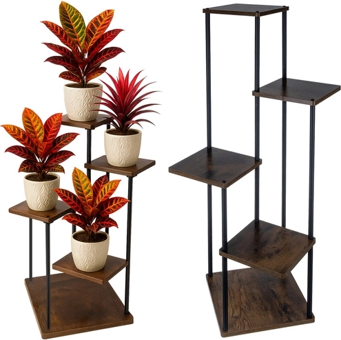 A virágtartó állvány 5 szintes, ami lehetővé teszi több növény elhelyezését, anélkül, hogy túl sok helyet foglalna.