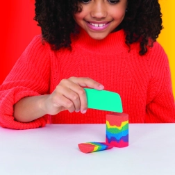Kombináld a pirosat, a sárgát és a kéket gyönyörű szivárványmintákká. Az átlátszó hengerek és tölcsérek segítenek a pontos rétegezésben és a látványos színadagolásban.