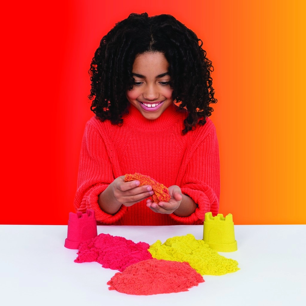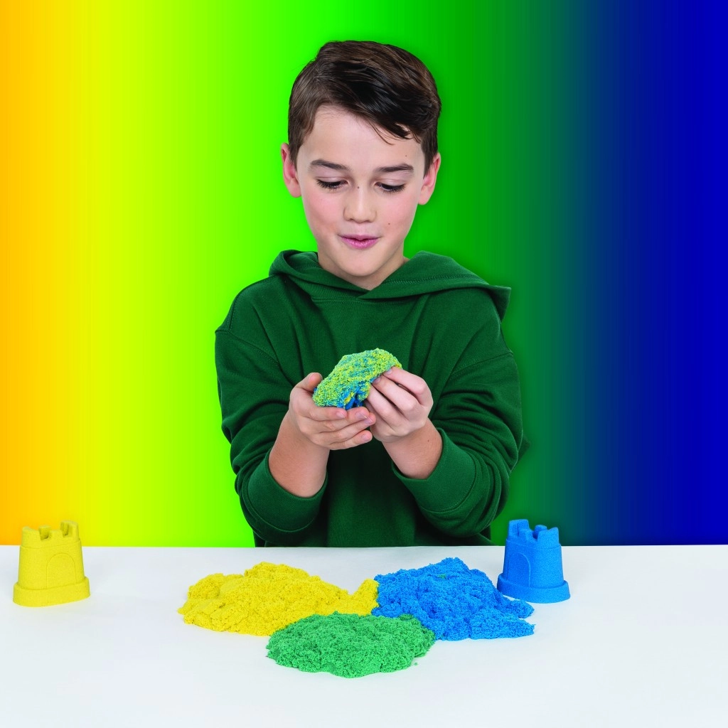 Ez a készlet az ikonikus Kinetic Sand homokot praktikus eszközökkel kombinálja a vágáshoz, keveréshez és formázáshoz. Készíts élethű szivárványokat, rétegezz színeket és építs színes várakat – a homok tartja a formáját, nem ragad és kellemes tapintású.