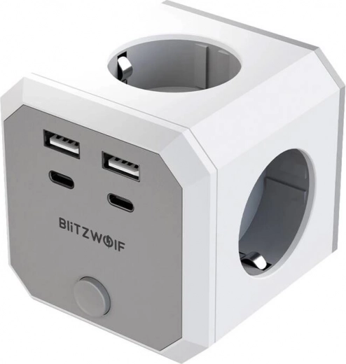 BlitzWolf töltőkocka lehetővé teszi, hogy akár nyolc eszközt csatlakoztasson egyszerre. Négy AC aljzattal és négy USB porttal (2x USB-A, 2x USB-C) rendelkezik, ami maximális rugalmasságot és 4 000 W teljesítményt biztosít.