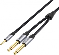 Átalakítós audio kábel a Vention-tól, amely lehetővé teszi a sztereó jel átalakítását egy 3,5 mm-es csatlakozóról két monó 6,35 mm-es csatlakozóra. Kiválóan alkalmas keverőpulthoz vagy aktív hangszórókhoz való csatlakoztatáshoz. Az aranyozott csatlakozók és ónnal bevont rézvezeték garantálja a tiszta, zavarmentes hangzást.