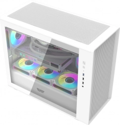A Darkflash számítógépház edzett üveg oldalpanelekkel van felszerelve, amely lehetővé teszi a könnyű hozzáférést az alkatrészekhez és megkönnyíti a frissítéseket. A minimalista dizájn az elülső hálós panellel nemcsak esztétikus megjelenést biztosít, hanem maximális légáramlást is az hatékony hűtésért.