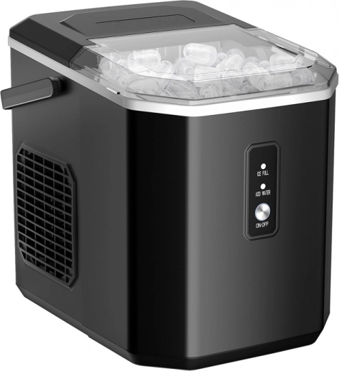 Kényelmes dizájn: A kényelmes fogantyúnak és a kompakt méretnek (29.5 × 29 × 23.5 cm) köszönhetően a jégkészítő könnyen belefér a csomagtartóba vagy szekrénybe, és könnyen magával viheti hétvégi kiruccanásokra, kerti összejövetelekre stb.