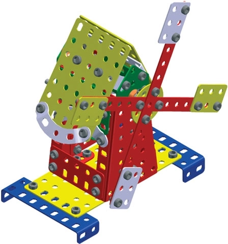 Sokféle összetevőt tartalmaz, például csavarokat és perforált részeket a szélesebb körű összeállítási lehetőségek érdekében.