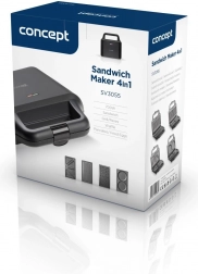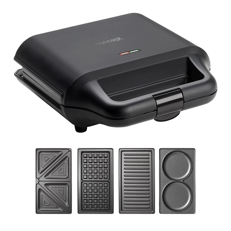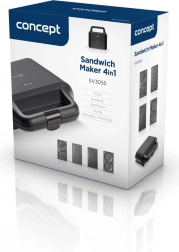 Az elegáns fekete dizájnú Szendvicssütő 4 az 1-ben a Concept márkától praktikus segítő a gyors ételkészítéshez. Segítségével elkészítheti: