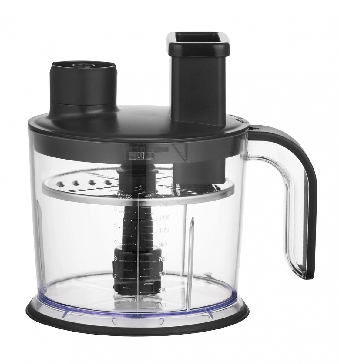 A krómozott, lecsatolható fej és a rozsdamentes acél kések segítenek finom szószok, levesek vagy bébiételek elkészítésében. További eszközök, mint a spirálozó, egészséges és eredeti köreteket tesz lehetővé. A különálló aprító segít dió aprításakor és jégdarázásakor. A tartozékok között található még egy tritán smoothie edény is, amely könnyen hordozható palackká alakítható át.