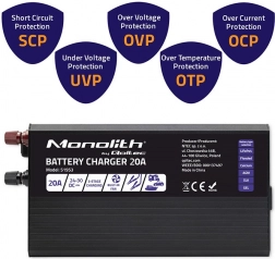 A Monolith töltő intelligens háromlépcsős töltést használ, amely biztosítja az akkumulátorok teljes és egyenletes töltését túltöltés elleni védelemmel.