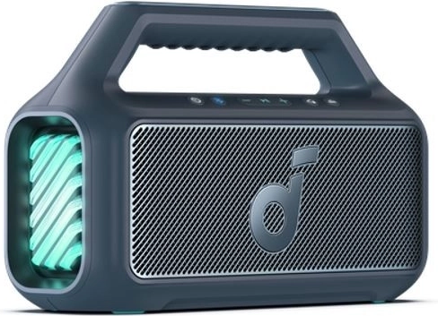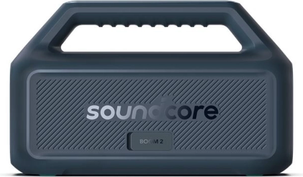 Soundcore Boom 2 egy erőteljes és megbízható vezeték nélküli hangszóró, amely remek hangminőséget és modern dizájnt kínál kék színben.