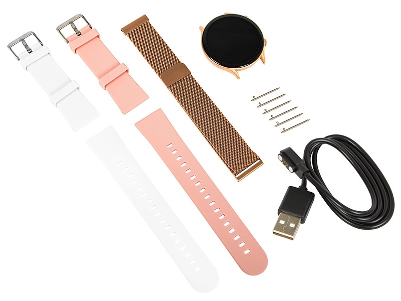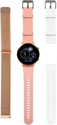 Az X19 rózsaszín intelligens órák tökéletes kiegészítők minden napra. A három cserélhető szíj segítségével - arany, fehér és rózsaszín - könnyen a hangulatodhoz igazíthatod megjelenésed. Élvezd a 360x360 px felbontású érintőképernyőt, amely éles és világos képet biztosít.