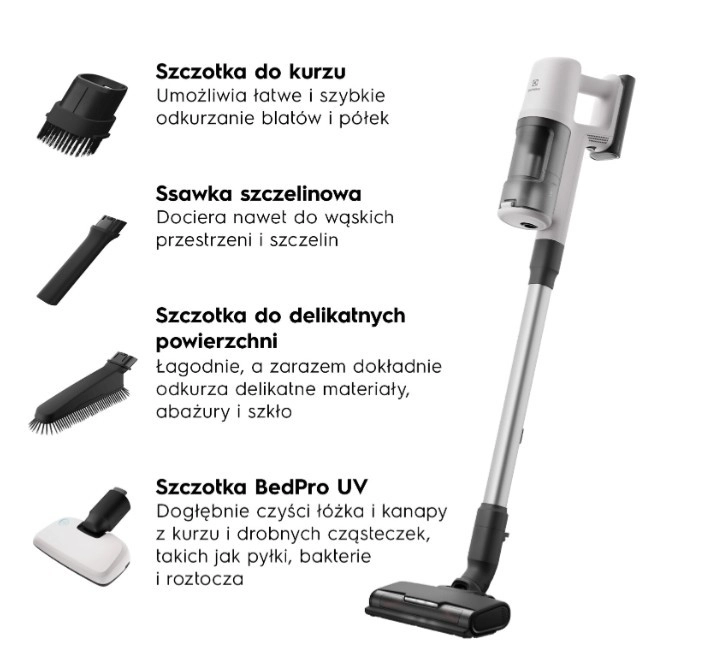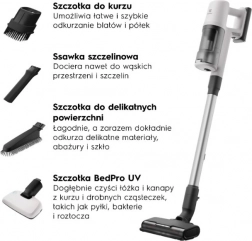 A BedPro UV-fénnyel ellátott kefének köszönhetően tökéletes tisztaságot érhet el, amely mélyen behatol a kárpitokba és szőnyegekbe, eltávolítva a rejtett port és szálakat.