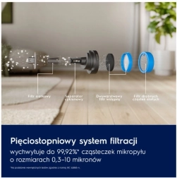 Az egyedi PowerPro multisurface kefével, amely különféle felületekre alkalmas, hatékonyan gyűjti össze a finom porszemcséket, akár 99%*-os teljesítménnyel a keménypadlókon. Teljes körű takarítás minden mozdulattal, minden sarokban.