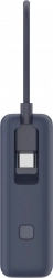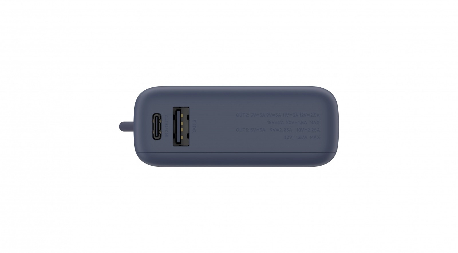 A powerbank három kimenettel: USB-C port, beépített USB-C kábel és USB-A port rendelkezik. Ez lehetővé teszi akár három eszköz egyidejű töltését a teljesítményvesztés nélkül. Az integrált kábel növeli a kényelmet és megszünteti az extra kábelek hordozásának szükségességét.