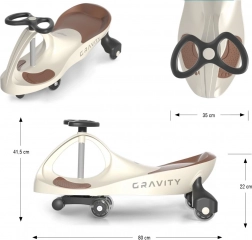 Gravity Futóbicikli egy innovatív termék, amely lehetővé teszi a mozgást gravitáció és a gyermek testmozgása segítségével, elemek vagy pedálok nélkül. Elég csak fordítani a kormányt, és mozogni előre, mint a varázspálcával.