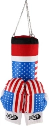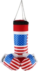 A boksz zsák és kesztyűk amerikai zászló mintával lettek tervezve, ami játékos és színes megjelenést kölcsönöz.