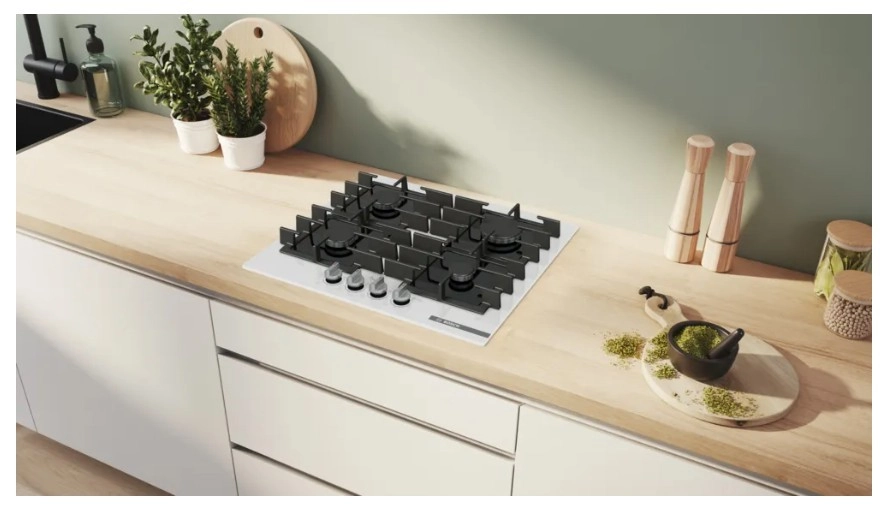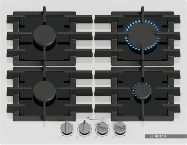 Teljes ellenőrzés a gáztűzhely fölött. A Bosch FlameSelect főzőlappal könnyen és pontosan szabályozhatja a láng intenzitását, ami garantálja a tökéletes főzési eredményeket. Kilenc lángszint áll rendelkezésre, ideális sütéshez, pároláshoz és főzéshez.