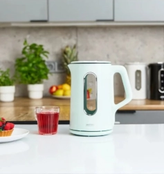 Képzeljen el egy vízforralót, amely nemcsak gyorsan felforralja a vizet a kedvenc italhoz, hanem a konyháját is feldobja. Ez a modell világítással rendelkezik, amely kékre változik, amikor a víz forr, hangulatot teremt a helyiségben és biztosítja a csendes működést a dupla falaknak köszönhetően.