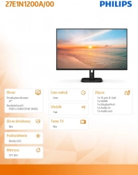 A Philips monitor 27 hüvelykes átlóval azok számára készült, akik kiváló képet és sokoldalúságot keresnek. Ez a modell IPS technológiát használ, amely kiváló színpontosságot és széles betekintési szögeket kínál. A 120Hz-es frissítési rátával folyamatos mozgást biztosít, ami ideális a játékhoz és a multimédiás tartalmakhoz.