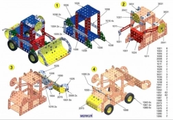 A készlet tartalmaz egy útmutató könyvecskét, amely lépésről lépésre elvezet a 30 modell összeállításához, mint például szalagfűrész, daru, teherautó vagy vagon. A bevezető oldalakon találhatók alapvető tippek az elemek összekapcsolásához, a lock anyák használatához és más modellezési technikákhoz.
