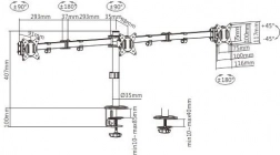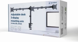 Kényelmesen állítsa be monitorait a három monitoros állítható asztali tartó segítségével, amely támogatja a 17 és 27 hüvelyk közötti méretű és akár 7 kg súlyú monitorokat.