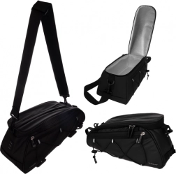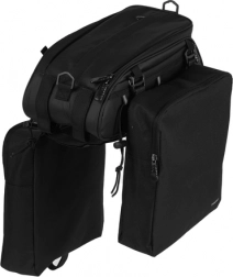 Vízálló poliészterből készült, ezek a táskák ellenállnak az esőnek és a nedvességnek, így minden időjárási körülmény között védik a dolgait. Egy központi táskából és két oldalsó zsebből áll, amelyek könnyen eltávolíthatók és válltáskaként hordhatók.