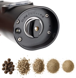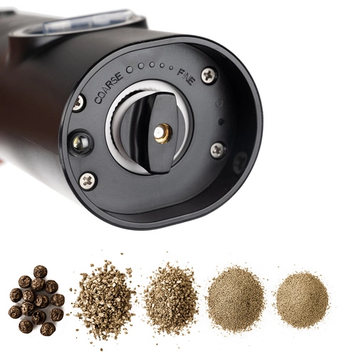 A LED világításnak köszönhetően ellenőrizheti a fűszerek mennyiségét még halványabb világítás esetén is. Az átlátszó ablak mindig megmutatja, mennyi fűszer maradt. Az örlők elemmel működnek (4× AAA egy örlőnél), és egy gombbal könnyen használhatók.