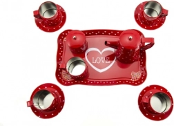 Bemutatjuk önöknek a piros bádog teáskészletet, amely minden teakedvelőt elbűvöl. Ez a 14 részes készlet a gyerekek biztonságát és szórakozását szem előtt tartva készült, 3 éves kortól. Bádogból készült, ami tartósságot és korrózióállóságot biztosít számára.