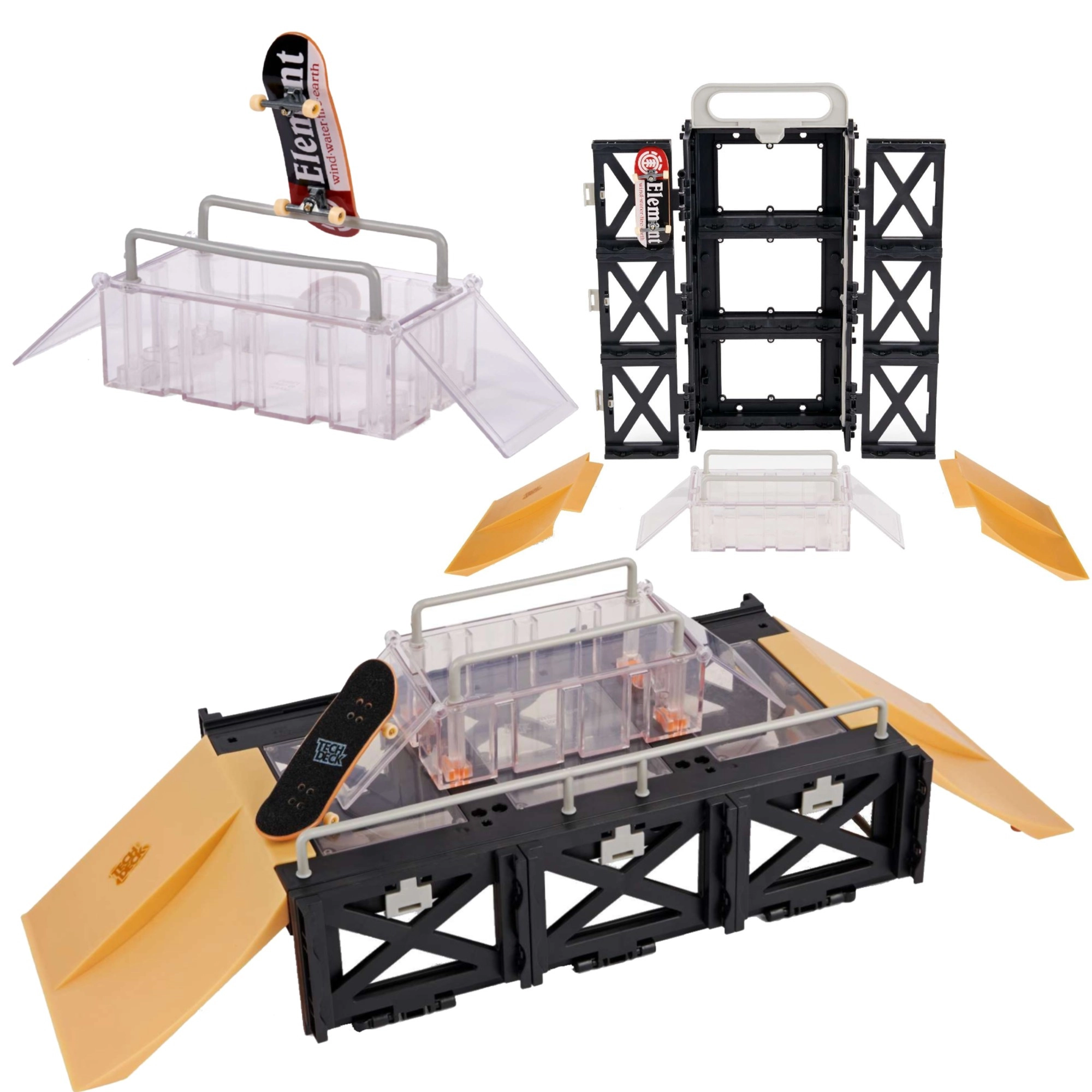 - 1× Tech Deck ELEMENT fingerboard, 1× tok/állvány, doboz zsanérokkal, 2× felnyitható kicker, 4× függőleges csatlakozó, 1× jobb oldali kicker dupla lejtővel, 1× bal oldali kicker dupla lejtővel, 2× magas korlát, 1× hosszú korlát, útmutató