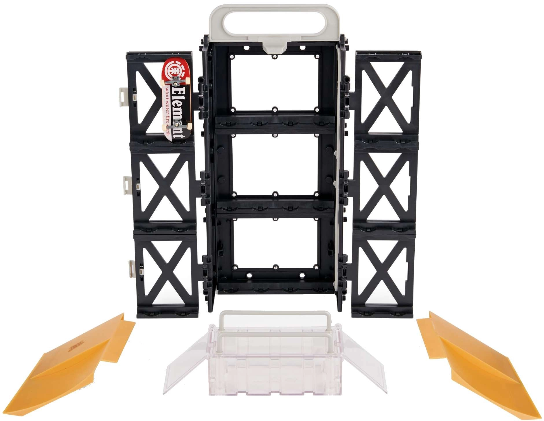 A Tech Deck Play and Display egy okos 2 az 1-ben megoldás: állvány és tároló tok a gyűjteményedhez, valamint egy teljes fingerboard skatepark trükkökhöz. A ládás kialakítás könnyen funboxszá hajtható rámpákkal és grind korlátokkal, így otthon és útközben is gurulhatsz. A csomag tartalmaz egy stílusos ELEMENT fingerboardot az azonnali menetre.