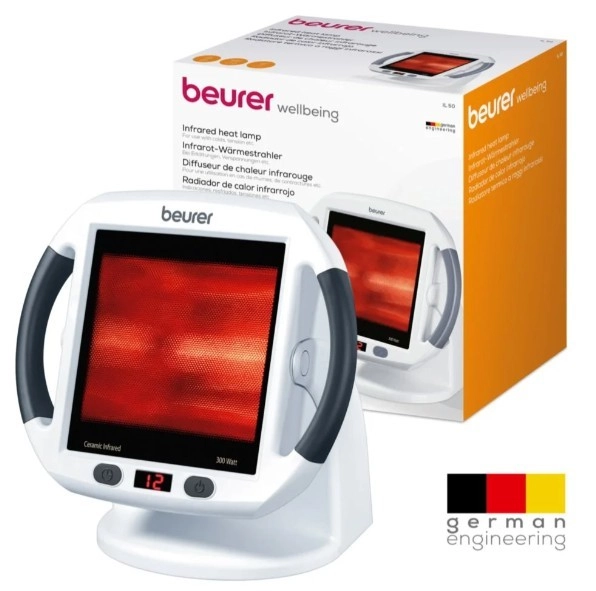 A Beurer IL 50 infravörös fény lámpa ideális a megfázások és az izomfeszültség enyhítésére. Praktikus kábeltekercselő rendszerrel és beépített túlmelegedés elleni védelemmel van ellátva.