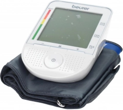 Biztosítsa az egyszerű és pontos vérnyomásmérést a Beurer Beszélő Vérnyomásmérő Felkarra segítségével. Ez a készülék nemcsak vizuális, hanem akusztikus információt is nyújt a mérési eredményekről a nyelveken: Cseh, Magyar, Román, Lengyel. A hangfunkció igény szerint állítható és deaktiválható.
