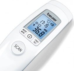 A Beurer FT90 orvosi hőmérő lehetővé teszi a érintésmentes mérését testhőmérséklet, valamint környezeti és felületi hőmérséklet. A hőmérsékleti értékek könnyen olvashatóak a megvilágított XL kijelzőn. A felhasználó kényelméért az eredmények kiegészíthetőek emotikonokkal.