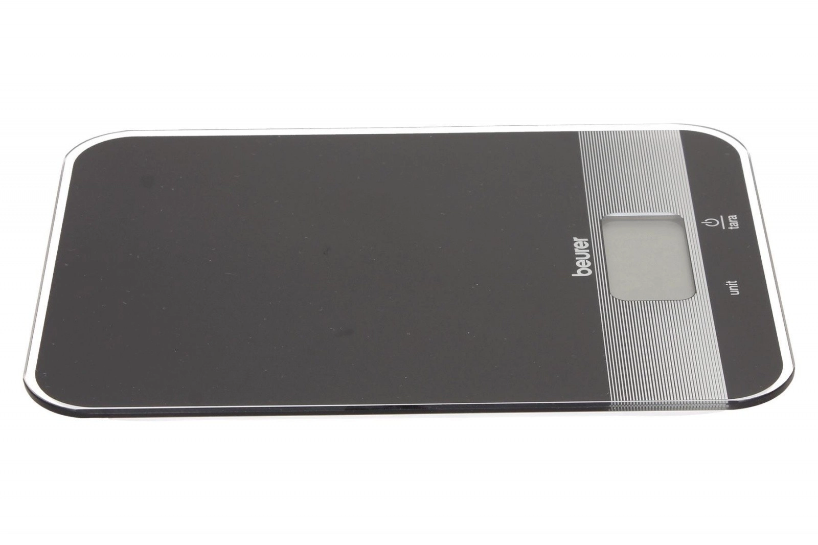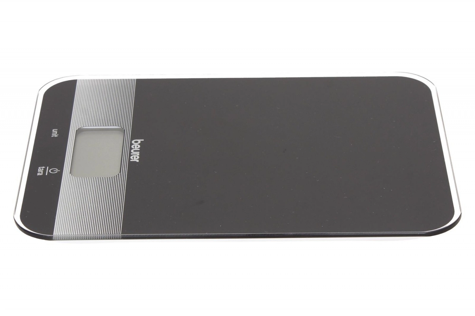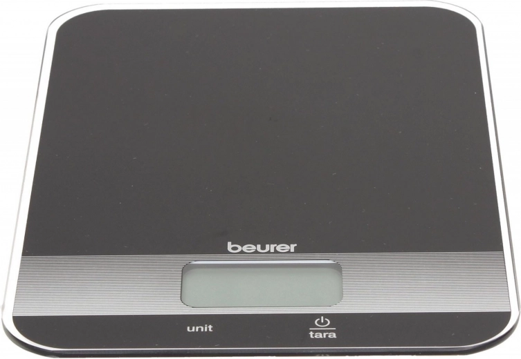 A Beurer konyhai mérleg elegáns fekete színben praktikus tára funkcióval és könnyen olvasható LCD kijelzővel van felszerelve. Az üveg felület modern megjelenést és könnyű tisztíthatóságot biztosít.