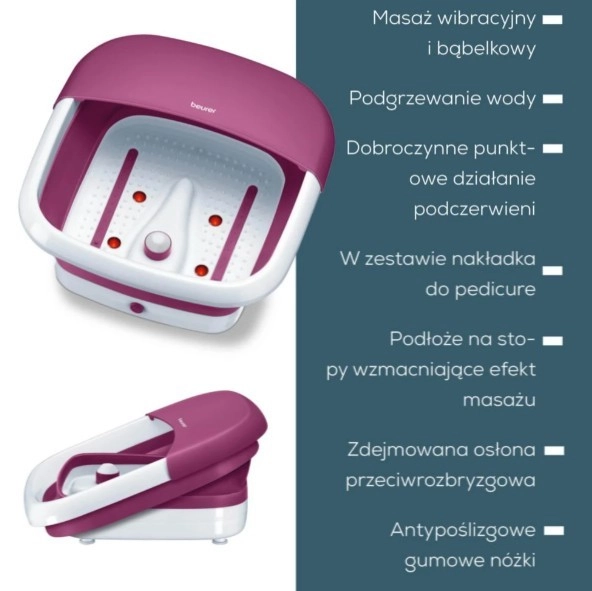 Relaxáló lábfürdő masszázshoz a Beurer-től kombinálja a pedikűr, vibrációs masszázs funkciókat és a víz hőmérséklet fenntartását, ami megkönnyebbülést és regenerációt nyújt a fáradt lábaknak.