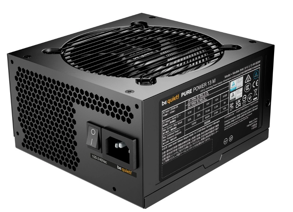 A Pure Power 850W csúcsminőségű 80 PLUS Gold hatékonyságot kínál akár 94,4%-kal. Tartalmaz ATX 3.1 támogatást a PCIe 5.1 és 6+2 pines csatlakozós grafikus kártyákhoz, valamint egy extra csendes 120 mm-es ventilátort be quiet! fél-passzív dizájnnal.