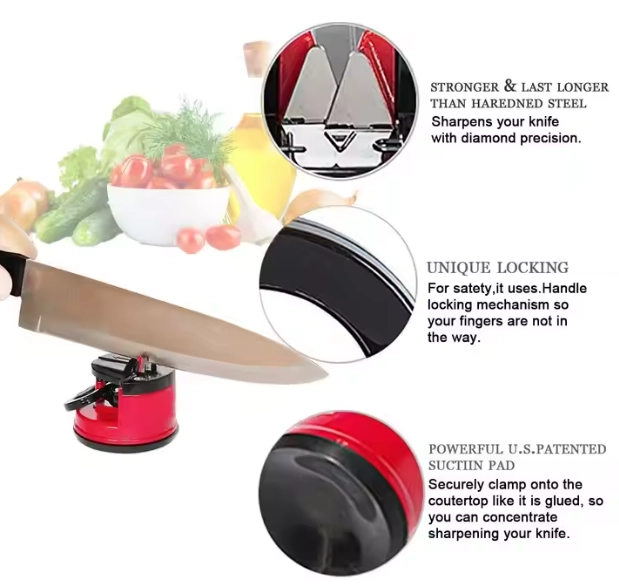 Ergonomikus fogantyú lehetővé teszi az eszköz könnyű rögzítését sima felületen. Egyszerűen nyomja le a kart, hogy aktiválja a tapadókorongot, majd többször húzza át a pengét a nyíl irányába az eszközök gyors és hatékony karbantartása érdekében.