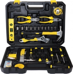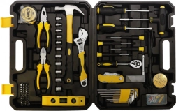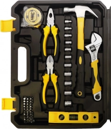 Ez a készlet tartalmaz mindent, ami a mindennapi feladatokhoz szükséges, mint például bútorszerelés, kerékpárjavítások, aljzatcsere vagy képek felakasztása. A kemény bőröndben található, formázott rekeszekkel biztosítja a könnyű szervezést és a biztonságos szállítást. A szénacélból és króm-vanádiumacélból készült szerszámok hosszú élettartamot és megbízhatóságot nyújtanak éveken át.