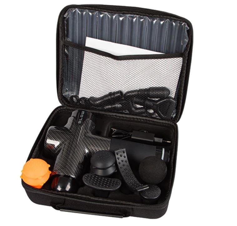Akkumulátor kapacitás – A masszázspisztoly magas kapacitású akkumulátorral van felszerelve, amely akár 6 órás működést is lehetővé tesz további töltés nélkül.