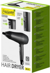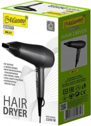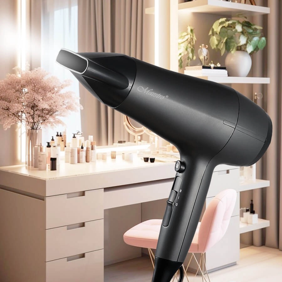 Maestro hajszárító DC motorral van felszerelve, amely hosszú élettartamot és csendes működést garantál. A csomagban koncentrátor található, amely lehetővé teszi a légáram pontos irányítását, ideális különböző frizurák készítéséhez.